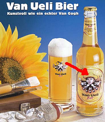 Witzig: Das «Ueli-Bier»-Logo hat Grafiker Rolf Dinkel für das «Van-Ueli-Bier» leicht «vangogisch» aufdatiert…