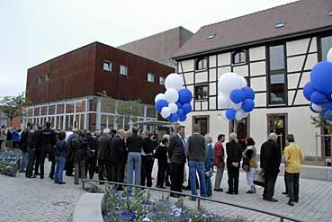 Gespanntes Warten vor der Einweihung: Doch zunächst gibt es eine ganze Reihe Eröffnungsreden und Reden zur Eröffnung.