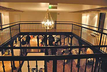 Der witzige Einfall der Handwerker, die untilgbaren Brandschäden von früher auf der Galerie einfach zu versiegeln, gibt dem Bohlenboden ein originelles Tüpfelchen aufs i.