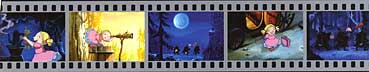 So sehen die Bilder im Film «Die Drei Räuber» auf der Filmrolle aus. Natürlich sind das in Wirklichkeit viel mehr Bilder pro Szene, aber das kann man in einem Artikel nicht so darstellen, sonst brauchte man mehrere Kilometer Platz dafür.
