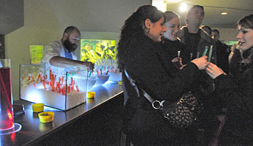 Der Zolli ist sowieso Heimat von vielen Gifttieren - warum also nicht auch von Giftmischern? An der Gift-Bar während der Museumsnacht im Vivarium jedenfalls wurde nebst einem giftig grün-gelben Gift-Cocktail gleich auch das Gegengift - campari-rot - gereicht…