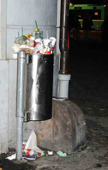 Der einzige Abfalleimer auf dem ganzen Münsterplatz ist nicht gross genug, weshalb selbst die Ordentlichen unfreiwillig Abfallsünder werden.